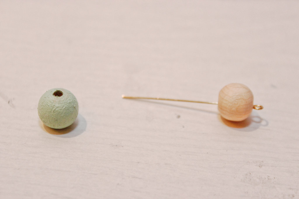 Wenn die Perlen trocken sind, nehmt ihr euren Kettstift und fädelt die Perlen auf.