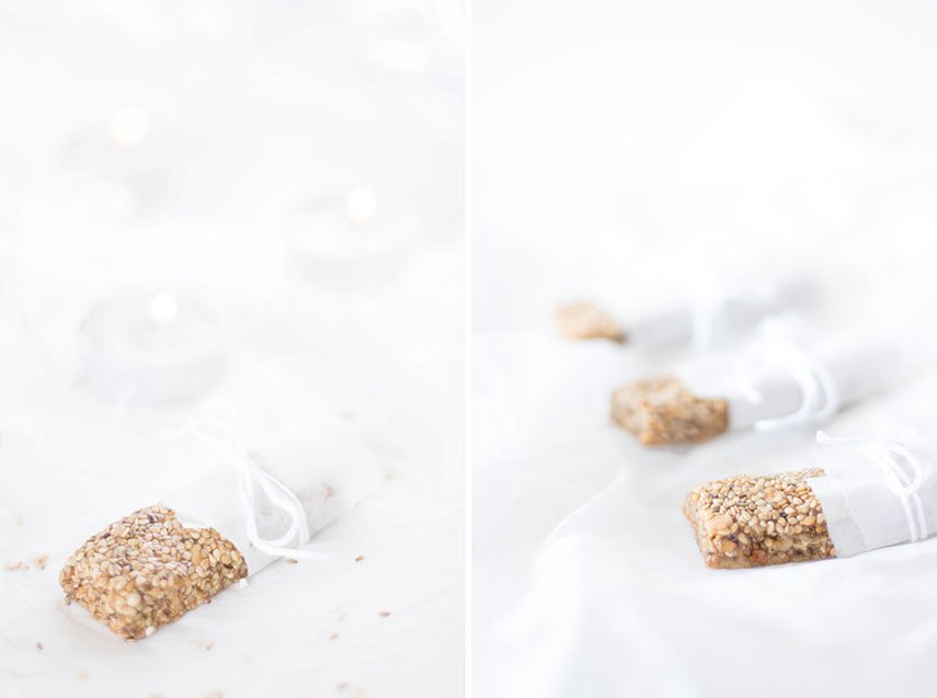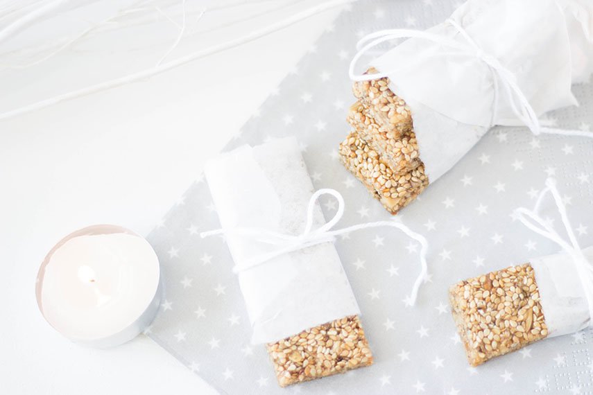 Ich finde, dass die Riegel mal eine gute Alternative zu Plätzchen sind. Wenn ihr sie weihnachtlicher machen wollt, könnt ihr natürlich auch noch eine Prise Zimt untermischen. Die Riegel sind nett verpackt auch ein nettes Mitbringsel. Da könnt ihr eurer Kreativität freien lauf lassen.