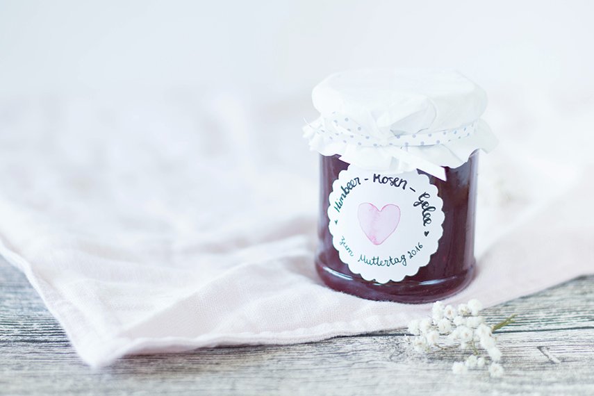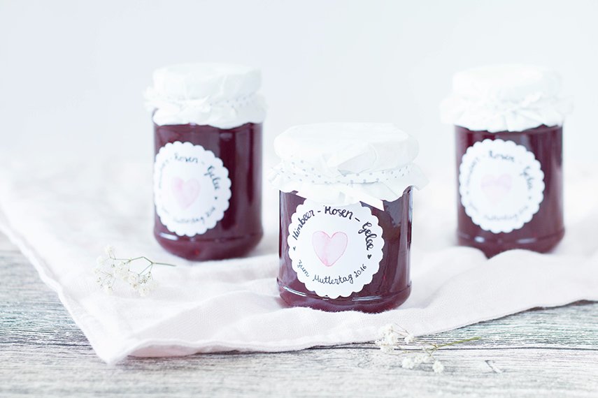 Liebe Dörthe, deine Mama wird sich über dieses selbstgemachte Geschenk sicher ganz tolle freuen. Himbeer-Rosen-Gelee kannte ich noch nicht… Ist bestimmt ein kleiner Genuss auf dem Sonntagsbrötchen zum Muttertag.