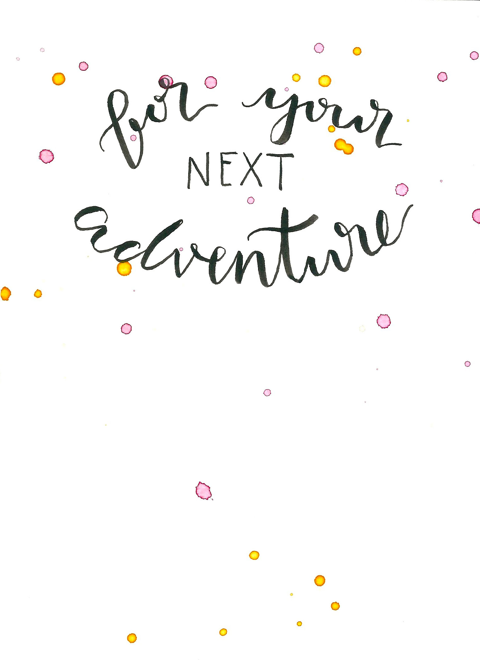 - Schneidet zuerst das Papier auf die Größe des Bilderrahmens zurecht. Dann schreibt ihr mit dem Brushpen „for your next adventure“ oder einen anderen Spruch darauf. Wer mag, zeichnet das Ganze vor und übt noch ein wenig mit meinen Handlettering Übungsblättern.