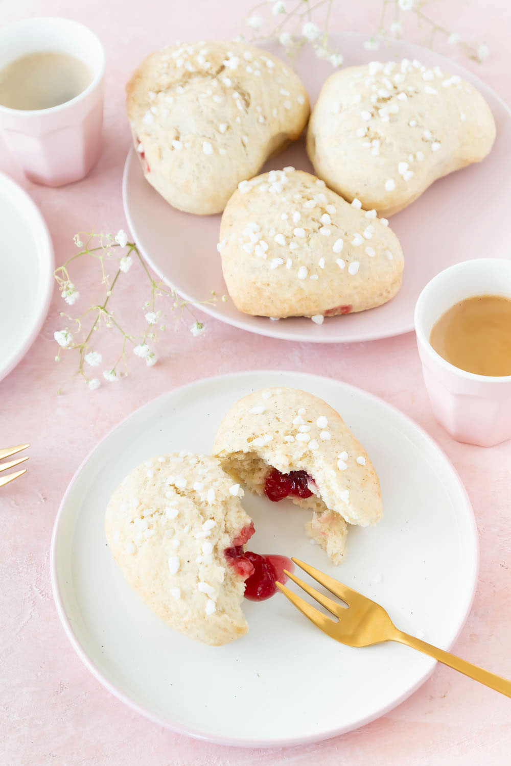 Macht ihr eurer Mutter Frühstück zum Muttertag? Oder überrascht ihr sie mit einem gemütlichen Kaffeekränzchen? Dann sind diese fluffigen und süß gefüllten Hefeteig Herzen genau das Richtige! Yummy! Zugegeben, wenn ihr nicht mehr im selben Haushalt wohnt, ist es dieses Jahr schwieriger, aber ihr könnt einfach ein paar Herzchen backen und sie euerer Mutter vor die Tür stellen. Wie wäre es dazu mit einer gebastelten Karte?